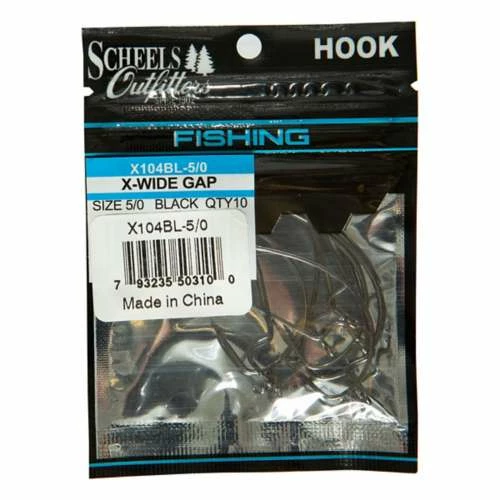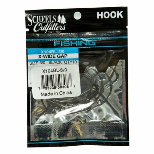 Trust Scheels to provide you with quality hooks for your next fishing adventure. The Scheels Outfitters X-Wide Gap hooks come in a variety of sizes and two colors. 10 hooks per pack.