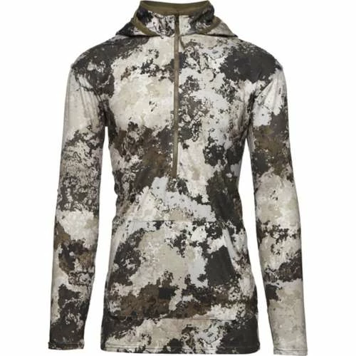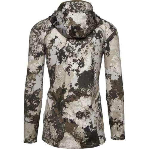 The Musselshell Hoodie is our lightest synthetic blend offering in the Big Game Collection. Featuring the popular hooded design along with a pass through Kangaroo pocket, this early season, layering garment will keep you cool in the early season and can be worn as the foundation of your layering system moving into the late season.