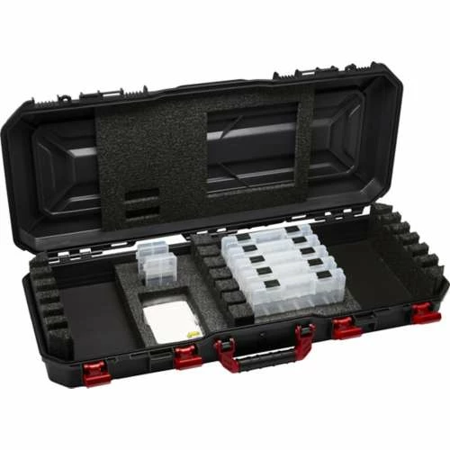 Scheels Outfitters Ultimate 2.0 Ice Combo Case is here to take your ice fishing experience to the next level. Now the interior setup has more space for combos and reels, while the exterior of the case offers premium protection with rich red latches and accents. With a foam padded interior for ultimate protection, the Scheels Ultimate 2.0 Ice Combo Case can hold up to six rods or combos. With durable hard-sided construction, the Ultimate 2.0 Ice Combo Case can handle rough transportation season after season. Protect your ice fishing rods and combos with the Scheels Outfitters Ultimate 2.0 Ice Combo Case!