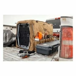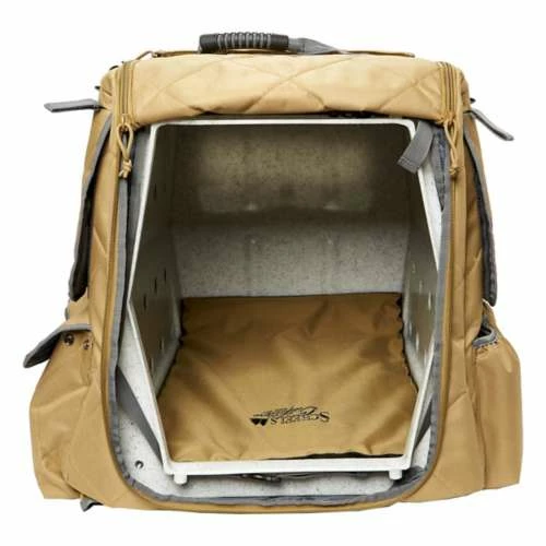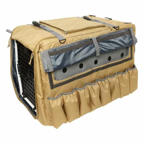 The Scheels Outfitters Kennel Cover 22 is specifically designed to fit roto-molded kennels as well as most standard kennels. Made to help trap and retain heat, the Scheels Outfitters Kennel Cover will keep your dog protected for chilly days and also reduce wind noise. When the temperatures are a bit milder, the zippered front flap and side windows help provide plenty of circulation. Additional features like the side bellow pockets with buckles and training supply pockets make for convenient storage. Make sure your pup is safe and comfortable with the Scheels Outfitters Kennel Cover 22.
