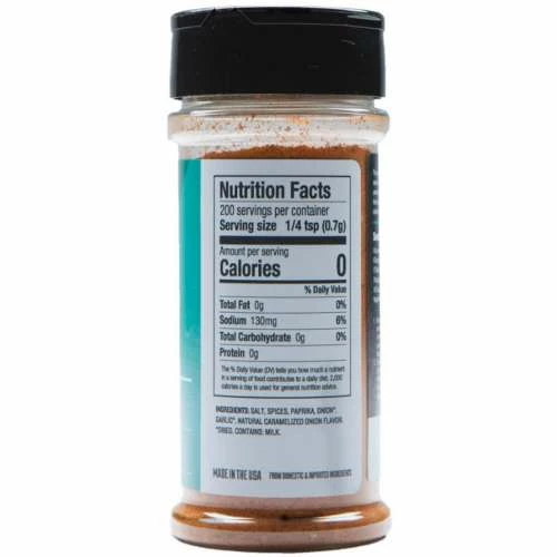Salt, Spices, Paprika, Onion*, Garlic*, Natural Caramelized Onion Flavor. *Dried. Contains: Milk.