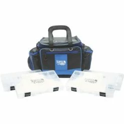 Pack all of your components into the included tackle totes and organize your tools in this versatile tackle bag. It features 3 large zippered side pockets, elastic mesh pockets to hold smaller items for easier access, and a front zippered mesh pocket to easily identify tools stowed inside. The large padded shoulder strap takes the strain off when fully loaded. Lures and components not included.